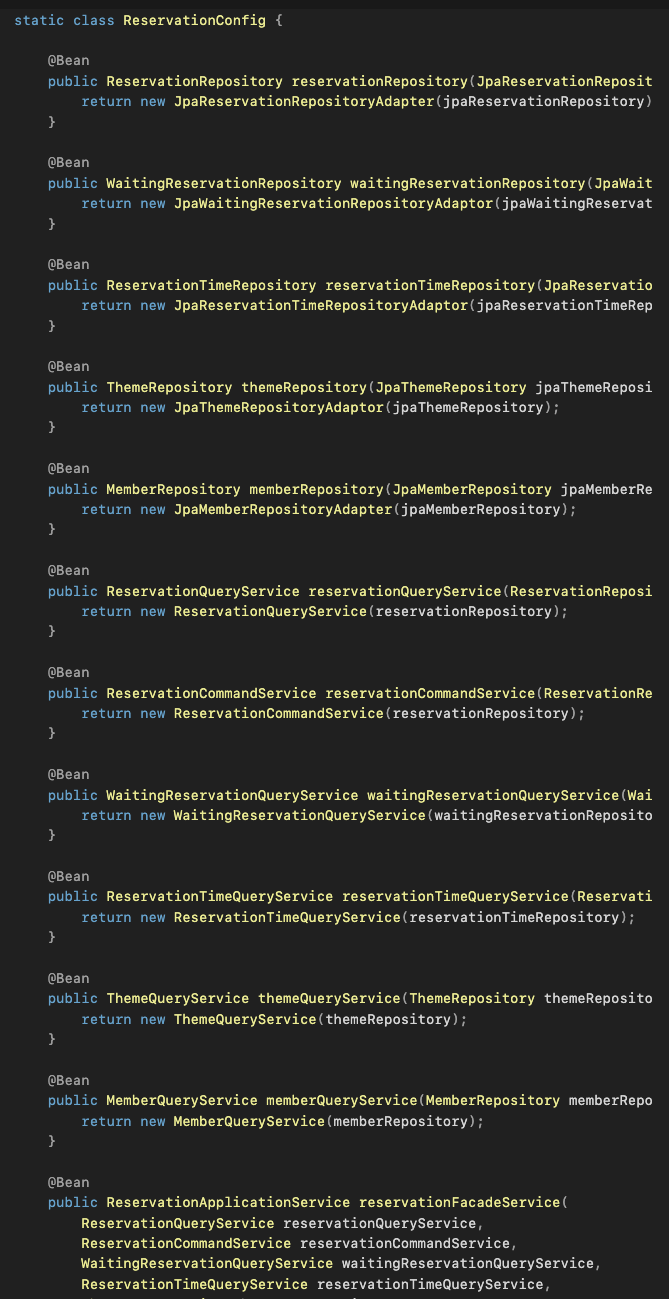 2. inner class๋ก ReservationConfig๋ฅผ ํตํด ๋น์ ์ง์ ๋ฑ๋กํ๊ณ ์๋ค.