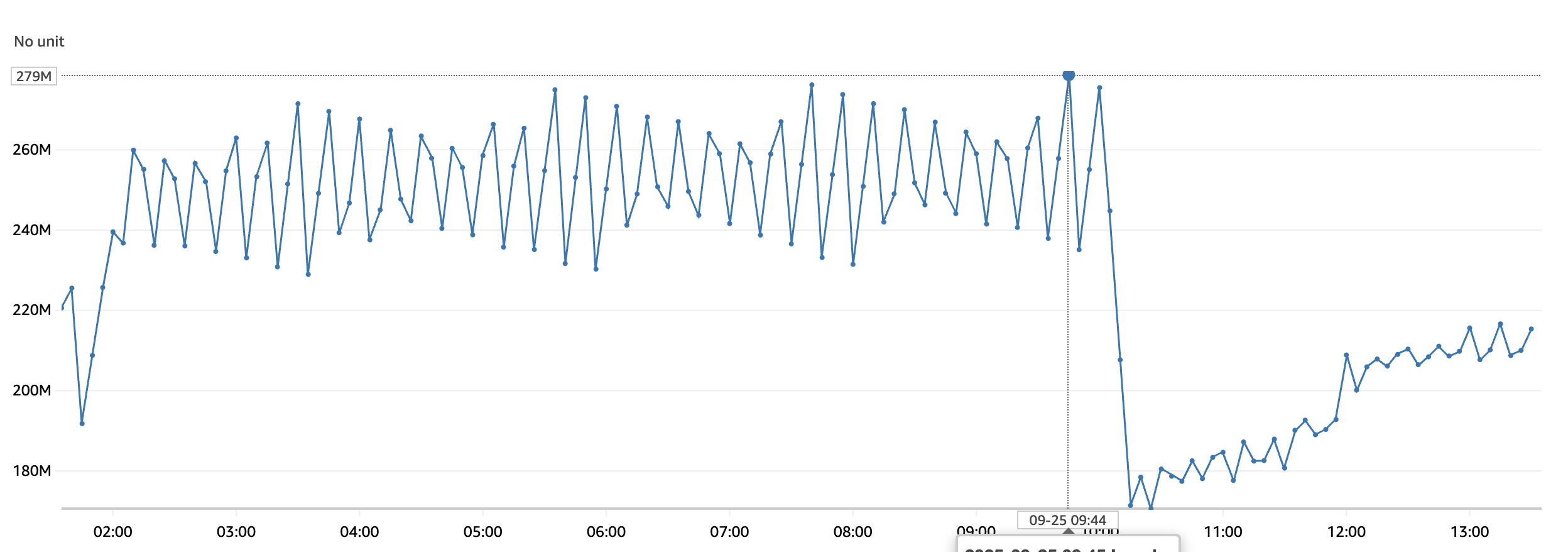 ์ด์ ์ด๋ฌํ ๋ฉ๋ชจ๋ฆฌ ๋ฌธ์ ๊ฐ ์ ๋ง ‘๋ด ์ฃผ๋ณ ๋ฌ๋ ์ฝ์ค ์กฐํ’๋ก ์ธํด ๋ฐ์ํ ๊ฒ์ธ์ง ์์๋ณด๊ธฐ ์ํด์ CloudWatch์ ๋ฉ๋ชจ๋ฆฌ ์ฌ์ฉ๋ ์งํ๋ฅผ ํ์ธํ๋ค.
